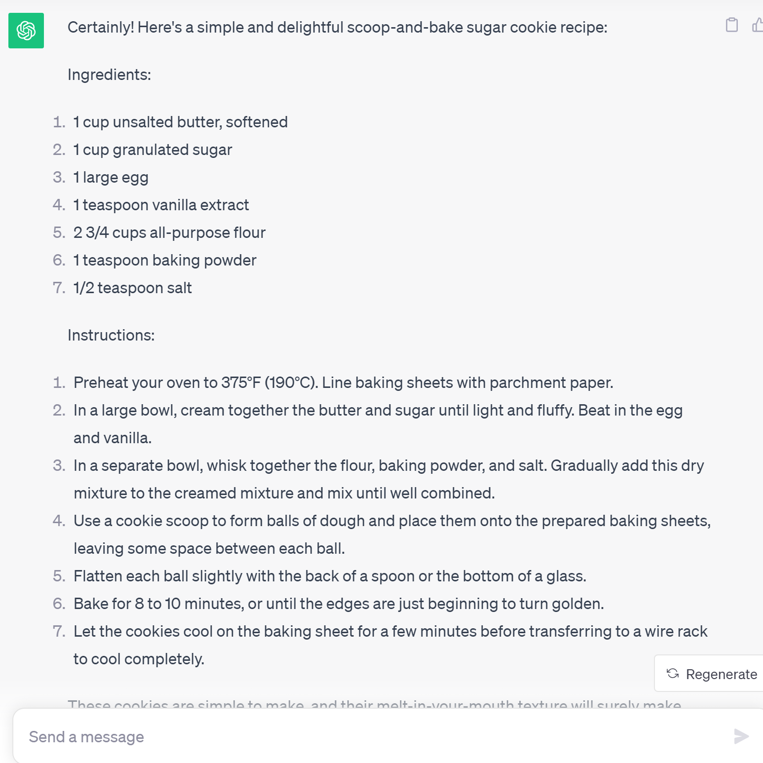 So I asked ChatGPT for it’s best scoop & bake sugar cookie recipe and this is what it gave me: