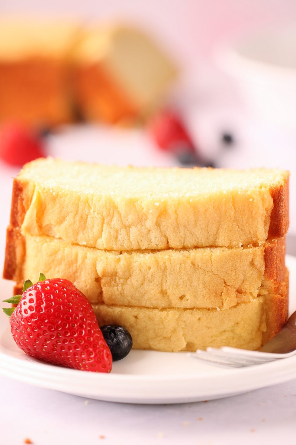 A buttery, buttermilk vanilla pound cake baked in a loaf pan. It is moist and dense with a deliciously crisp and golden exterior. Serve it plain or with fruit and whipped cream.